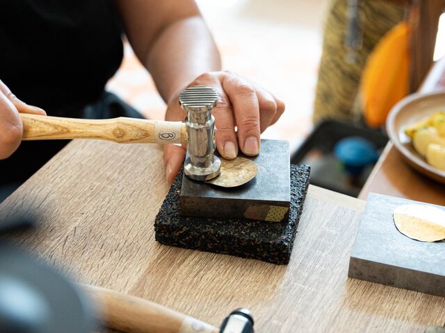 Durant quelques heures, vous serez immergé.e dans l’univers du bijoutier, vous découvrirez les techniques pour fabriquer un bijou en laiton : martelez, coupez, soudez … vous vous familiariserez avec les outils du bijoutier pour commencer, puis place à la création. Repartez avec votre bijou !