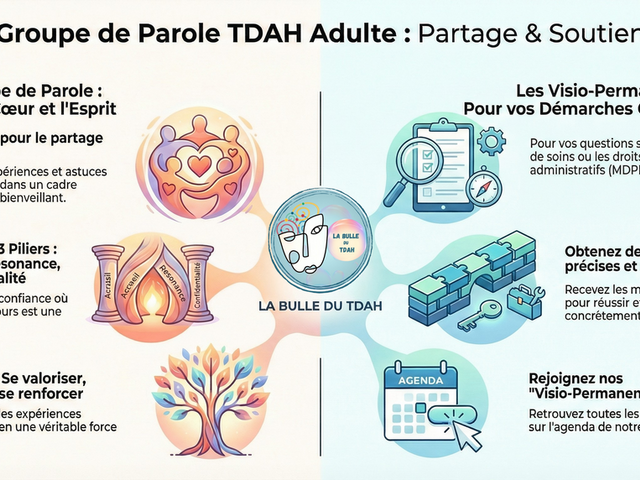 Venez échanger dans un cadre sécurisant. Ici, on se comprend à demi-mot. Partagez vos expériences et astuces du quotidien entre adultes concernés par le TDAH. Un moment pour le cœur et l'esprit, pour partager ce que nous vivons de l'intérieur.