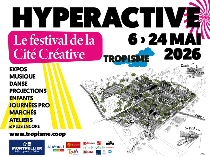 Le Festival Tropisme devient HYPERACTIVE, le festival de la Cité Créative de Montpellier. Pendant 3 semaines, concerts, performances, projections et ateliers animeront le quartier, entre passé militaire et futur créatif.